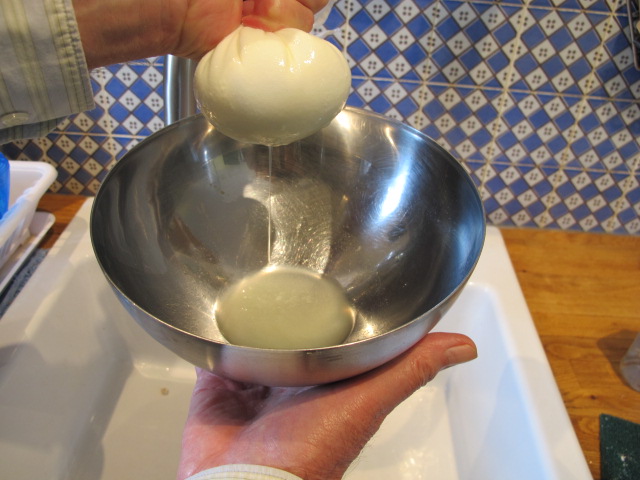 gather the material together and gently squeeze out about 60 ml of whey (liquid).