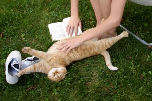 Marmalade is being particularly caring–doing my cleaning for me–thoughtful boy!