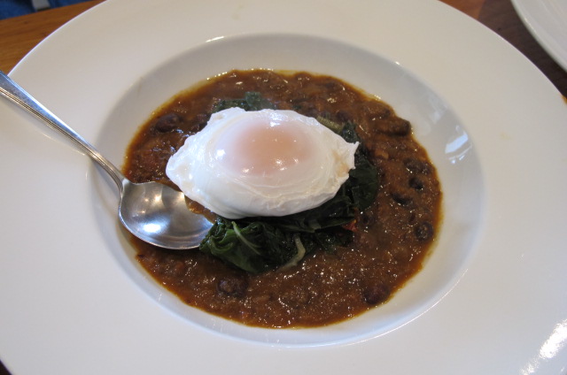1) “Left-over” Black Bean Soup (see my recent post)–heated through–thoroughly.