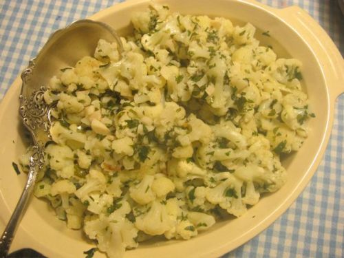 1 cauliflower–divided into small florets (it’s worth taking the time to divide them small–it makes the dish look more inviting).