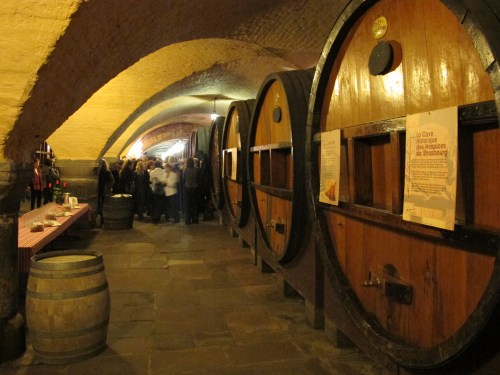In a cave underneath the hospital of Strasbourg great casks of local wine are stored--including the oldest cask of drinkable wine in the world--so they say!