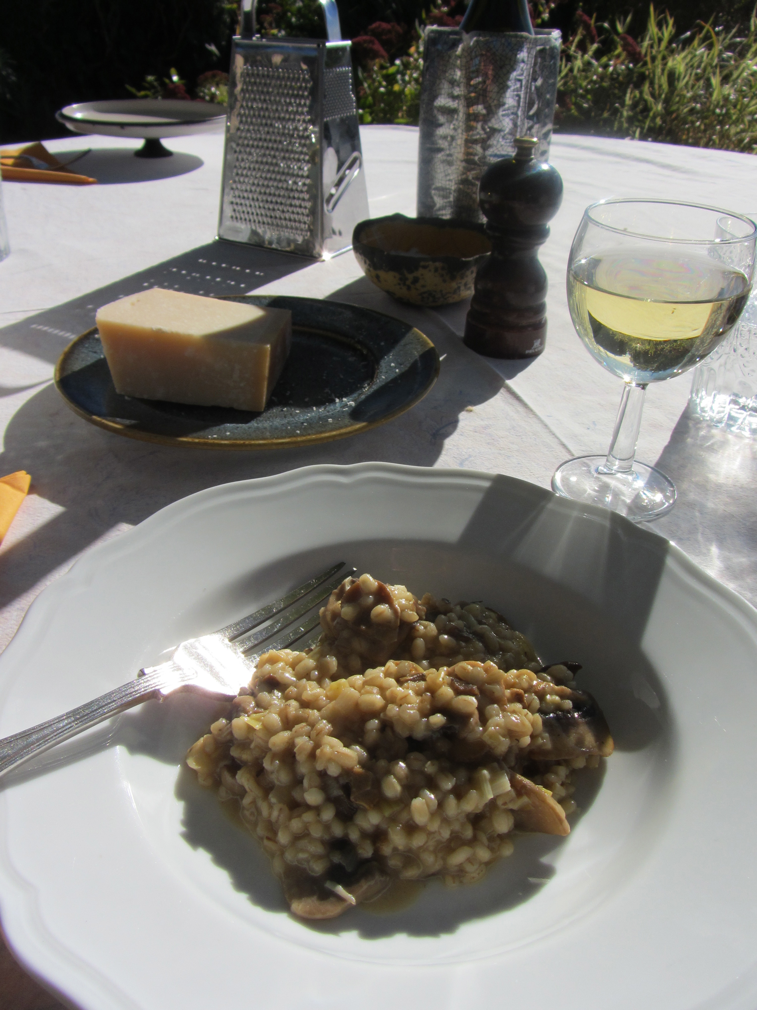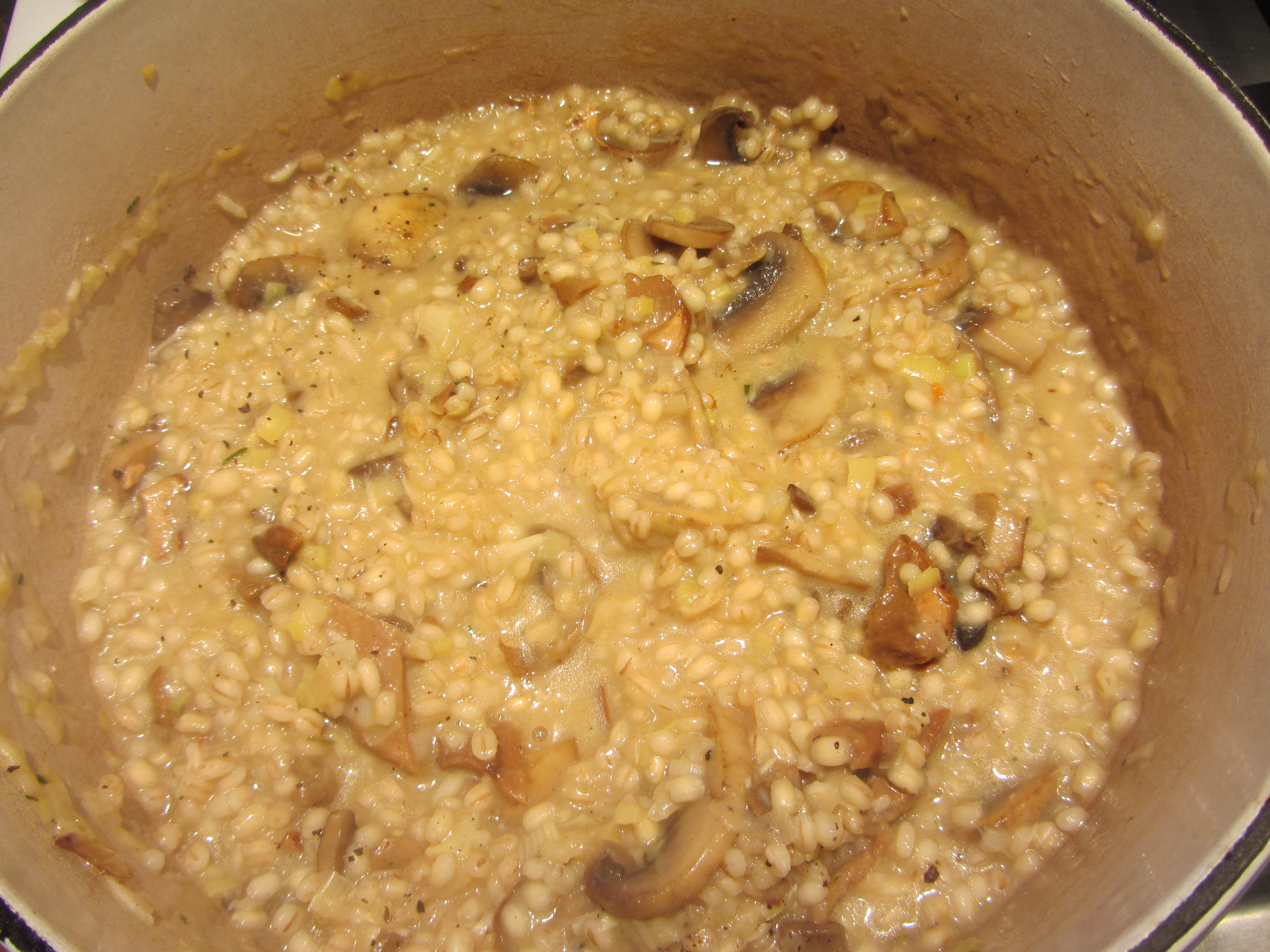 - When the barley is soft but still has a little bite in the centre–this took about 20 minutes this morning–the risotto is ready for the mushrooms–dry and fresh.