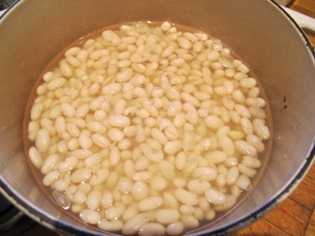 Drain the beans and serve them hot. Season to taste with salt and pepper, adding a swirl of the best olive oil you have.