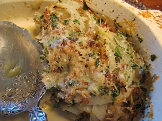 (I notice–after lunch–that I posted a version of Fennel au gratin 3 months ago–but this one is different–with bacon added).