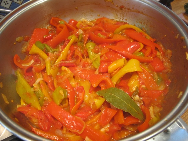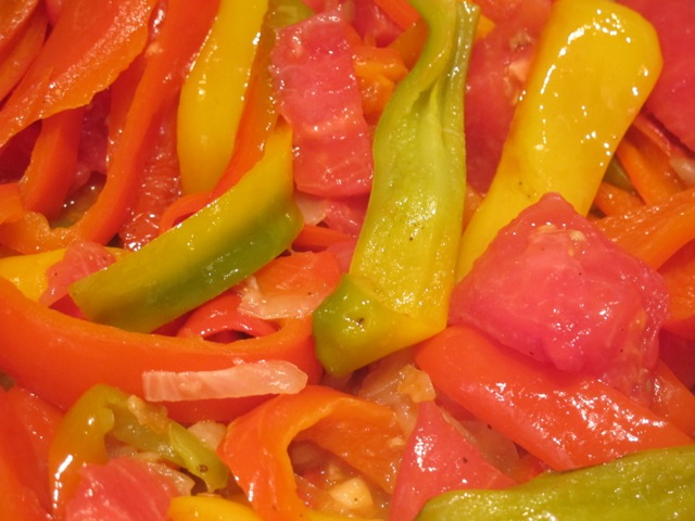 Peperonata–a sauce made from fresh, ripe tomatoes, red and yellow sweet peppers, onion and garlic.