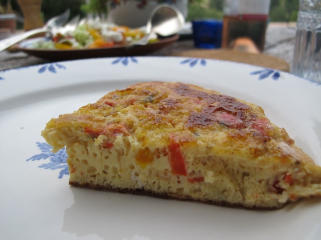 This pretty frittata (Italian omelette) requires a good dollop of peperonata turned into the egg mixture.