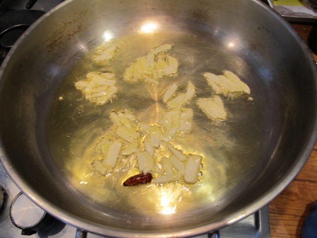 Add the garlic and cook for about a minute–it should start to soften.