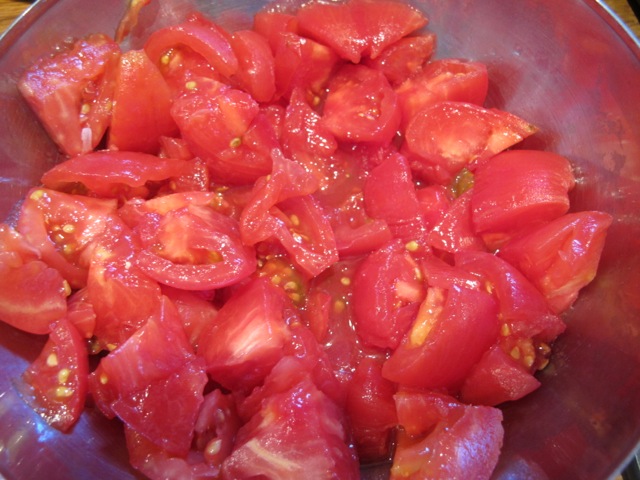 1.5lb/750gms fresh ripe tomatoes–peeled and chopped small
