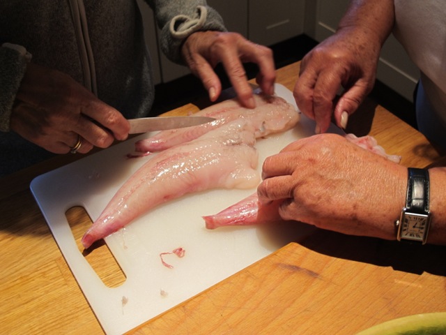 (Romaine separated the fish from the cartilage–something I usually leave guests to do for themselves.)