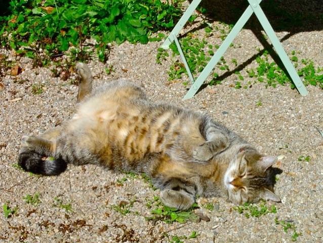 Lucien loved to lounge in the open air, albeit often behind a tree and close to the garage and sometimes, very occasionally, he’d forget himself, throw care to the winds and simply let it all hang out!