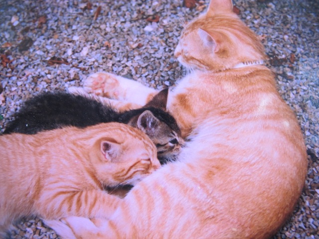 He was a “found” cat, who’d been separated from his mother too early–a rough start for anyone. After such a trauma, likely it was hard for him to trust anyone–one reason perhaps for all those years he spent in the garage with one sleepy eye on the cat-flap, guarding us from unwelcome guests!