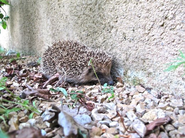 As dusk falls–about 9.45pm at present–we can be sitting round the table at the back–often with company–when we sense a presence and turning slowly behold a small creature making its way forward, apparently unaware that he or she is not alone.