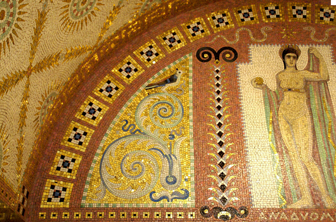 Pretty interior courtyards and reception rooms are decorated with shells, mosaics, stained glass and wrought iron–every fitting finely-crafted in the art nouveau style.