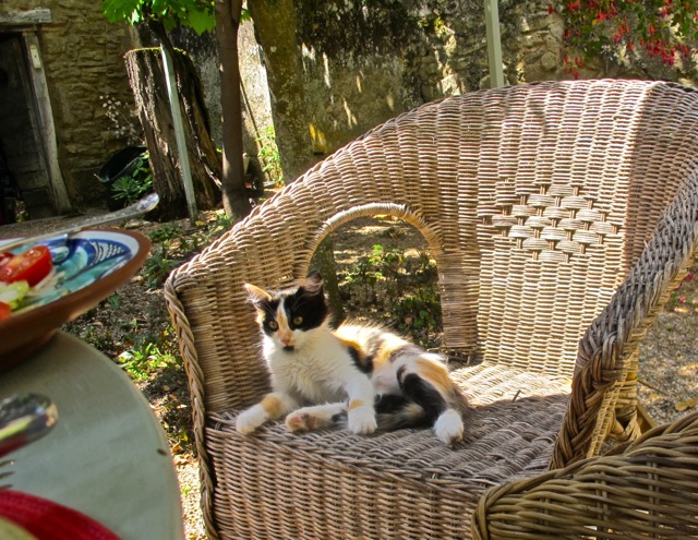 Look forward to a post about your sweet looking guest. She seems right at home and looks very comfortable on that chair.