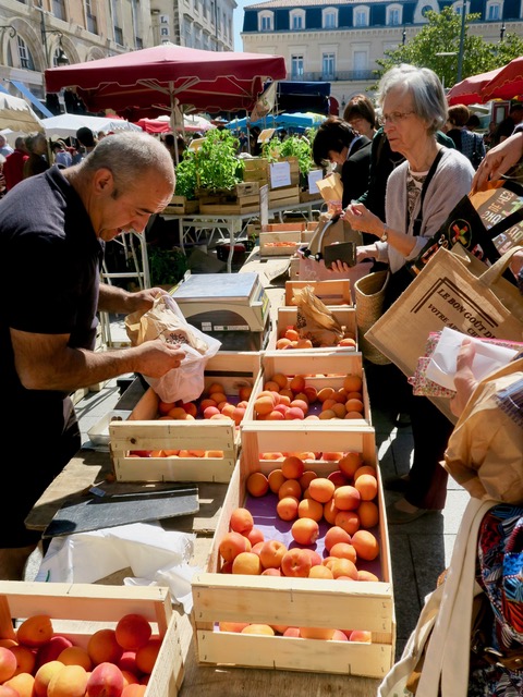 Place Jean Jaures on a fine Saturday morning in the first days of summer is slowly coming alive as the stall holders–chatty and enthusiastic–finish setting up.