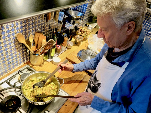 I shall do the others later, as the harvest from our four plants continues–but tonight’s little dish will be sautéed zucchini with onion, thyme, olive oil and a little butter.