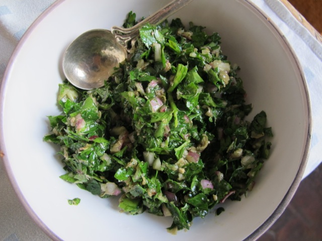 I had some parsley to spare and a good supply of capers in the fridge–add red or white wine vinegar, olive oil, red onion or shallots and garlic–in no particular order and…