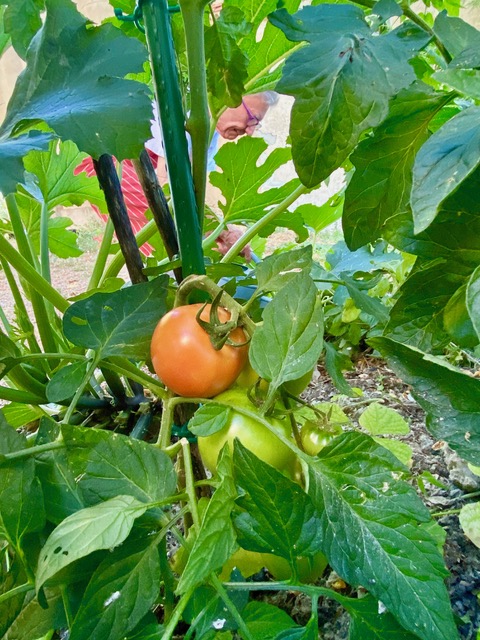 I picked my way gingerly (an early 16th-century term–meaning elegantly, daintily, walking or dancing with small elegant steps) up the path, collecting some freshly fallen walnuts and squeezing a black fig for ripeness from a bush, then discarding it. Not a good year for figs!