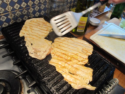 In a reversal of roles, Meredith has been cooking and caring (she was ill first)–serving up simple, delicious, restorative vegetable soup and scrambled eggs.