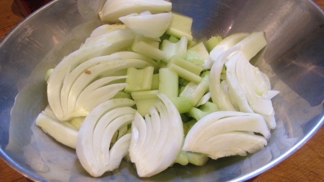 1 large fennel bulb–outer leaves removed, halved vertically and then each half carefully divided into eight pieces. (This helps them become tender quicker!)