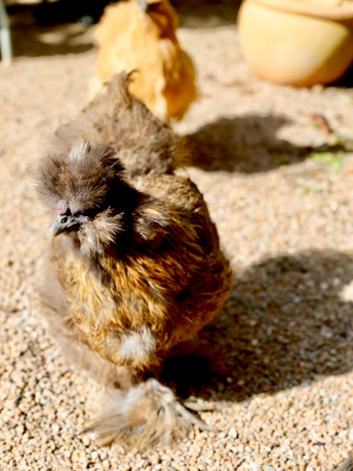 I found her under the old henhouse scratching around, reunited with her friend, getting back up to speed.