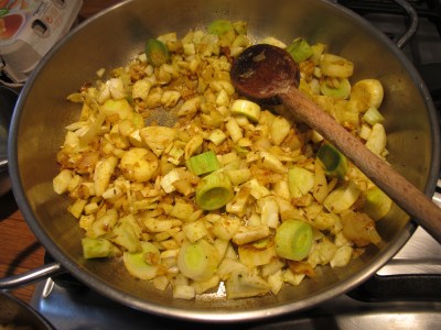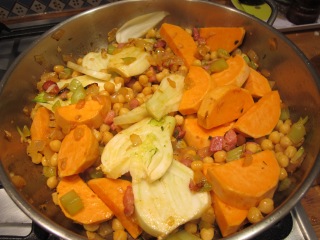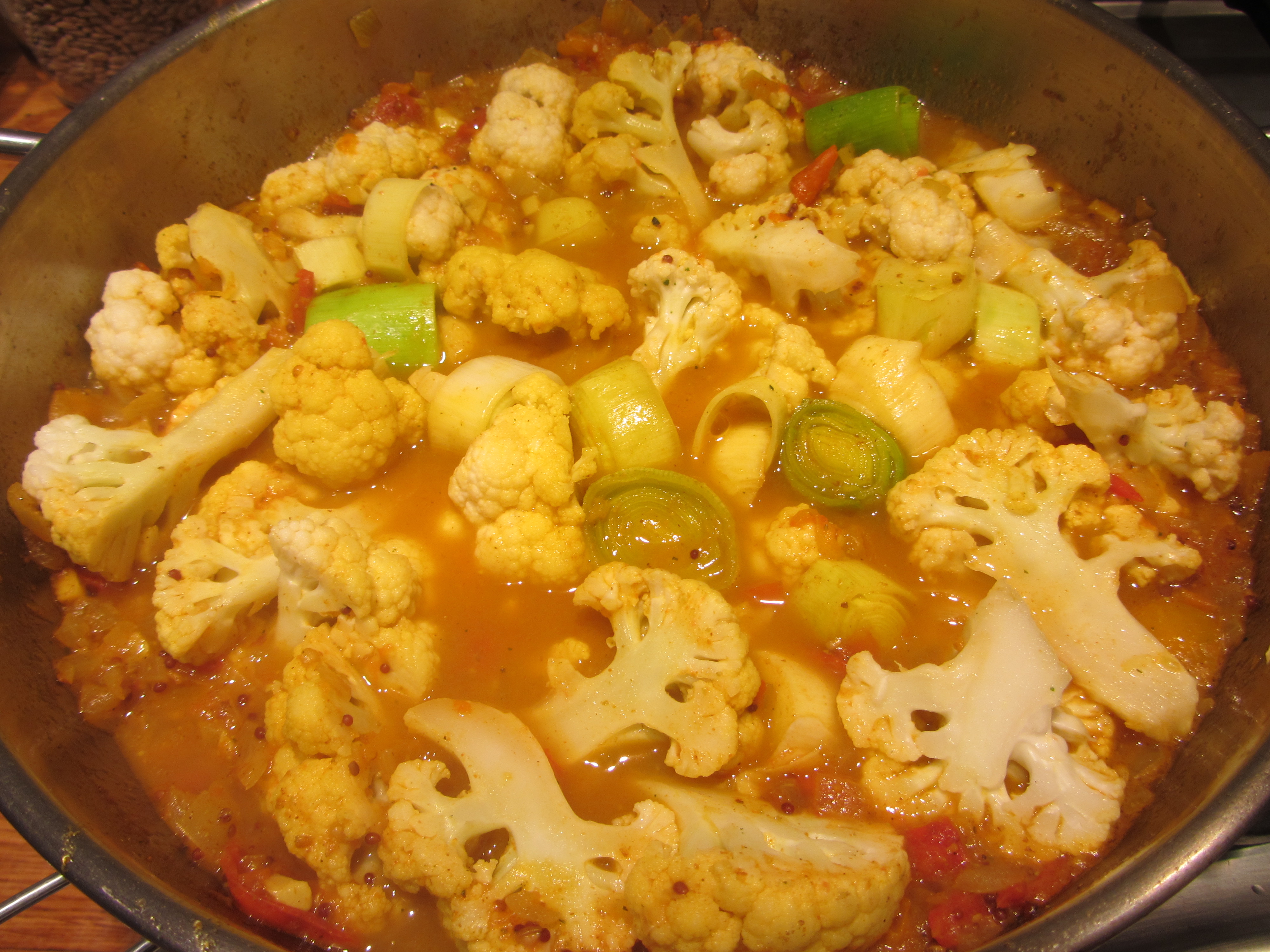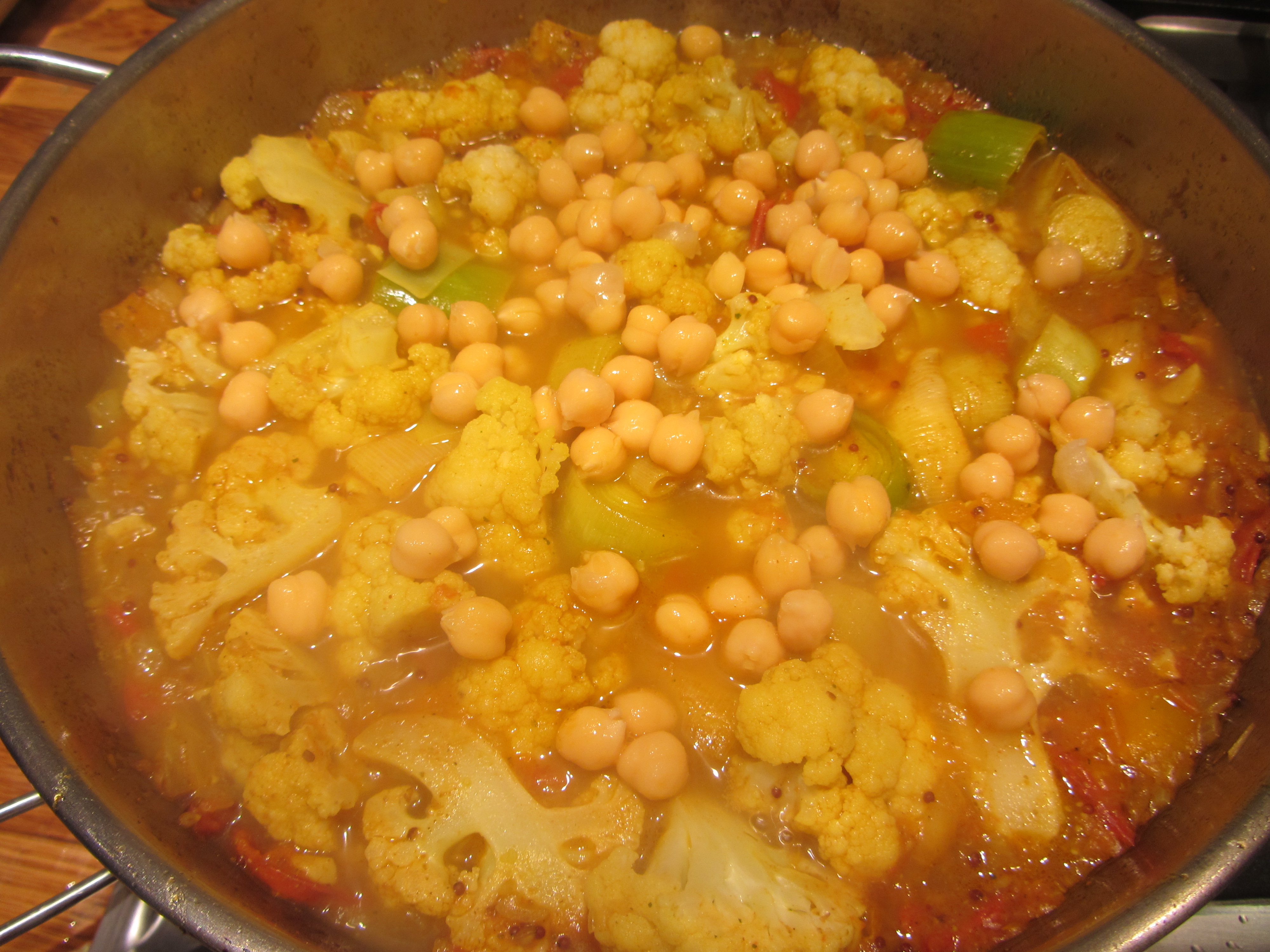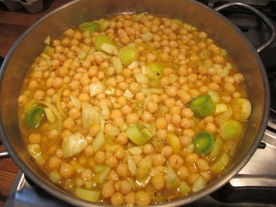 First suggestion from Mr. Google: Chickpea, leek and fennel curry from robin-ellis.net!!