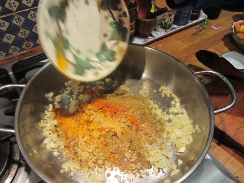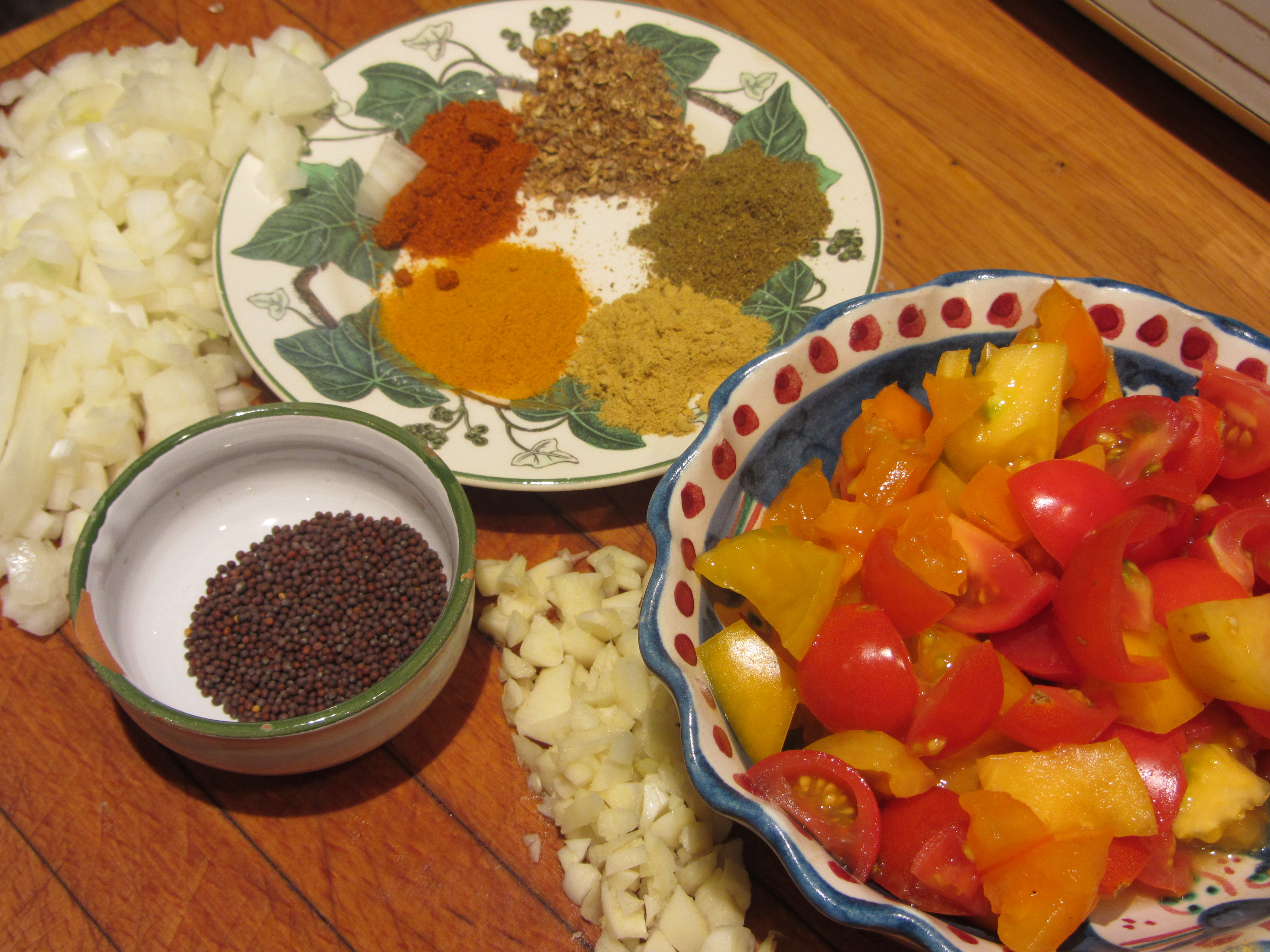 1/2 teaspoon each of garam masala ( an earlier post), turmeric, ground ginger