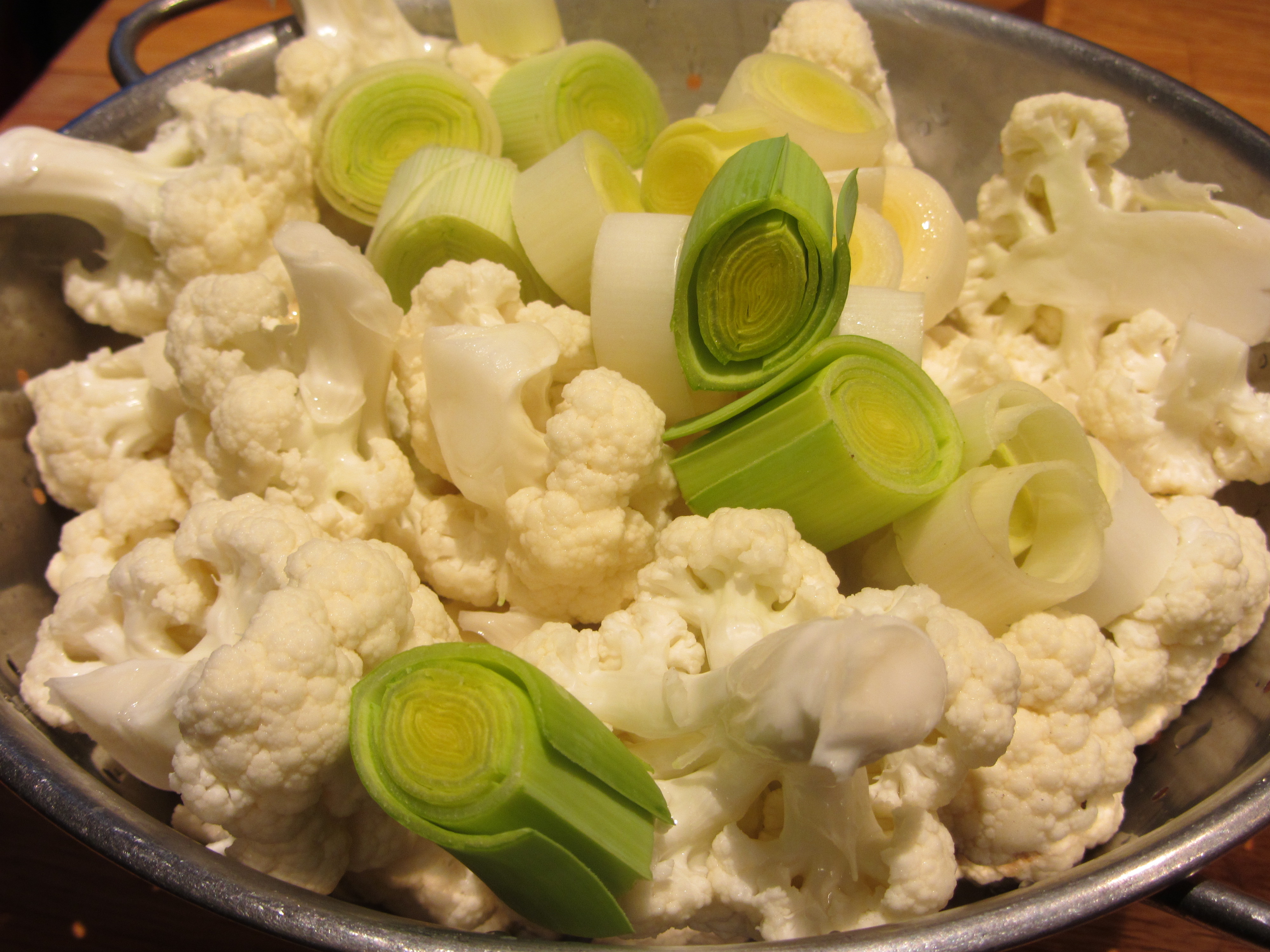1 large leek–damaged outer parts removed, cut down to the base, washed and sliced