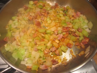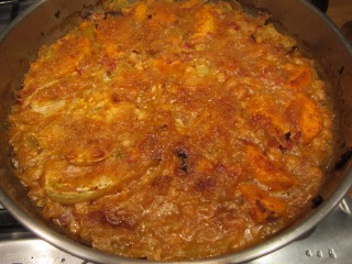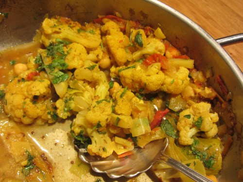 The recipe is inspired by Rose Elliot’s vegetarian cookbooks–on my shelf for ages and much thumbed!