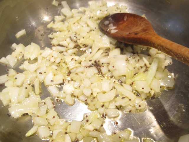 - Heat the oil in a medium pan and add the mustard seeds.