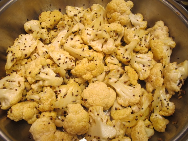 Aha! Cauliflower with mustard seeds and fennel seeds–inspired by Madhur Jaffrey.