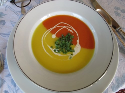 We first had this dish at Donald Douglas’s birthday lunch. (Donald played the dourly determined Captain MacNeil in Poldark and has been a cherished friend and neighbour of ours here in France for years.) It was his step-daughter Daisy’s birthday contribution to the celebratory feast…