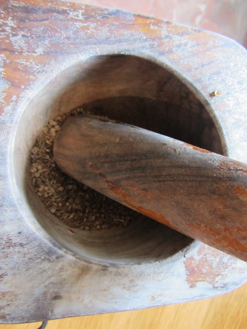 - Then pop them in a mortar and pestle them to break them up a bit.