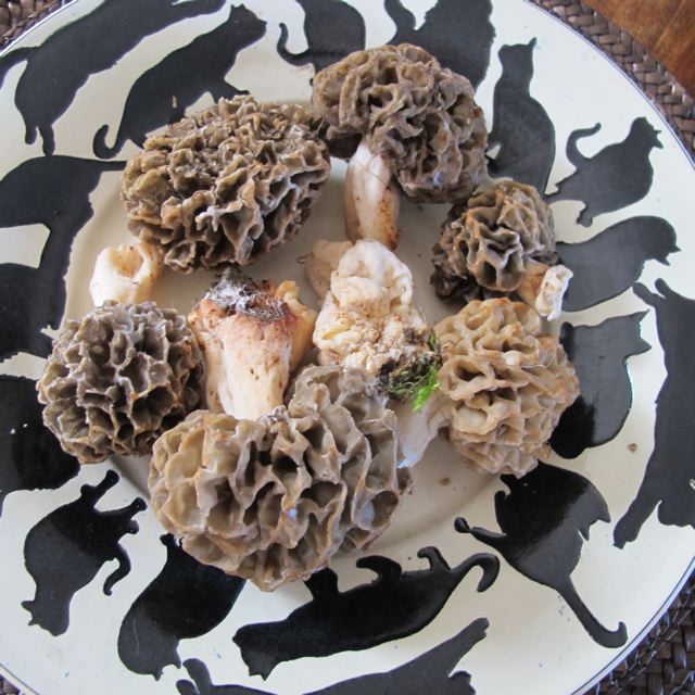 Yesterday she’d brought round another bag of morel mushrooms–‘miffed’ perhaps that I had not followed her advice about using creme fraiche in the cooking of the first lot. (I didn’t have any.)