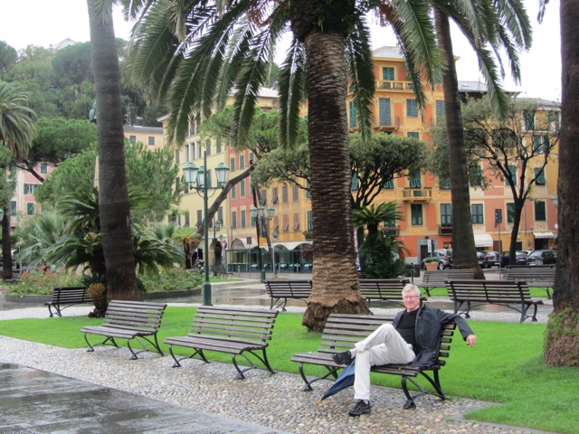 We’re bunched in beside him–Meredith finishing off her oat flake breakfast as the sun begins to warm the hillside vines and olive groves.