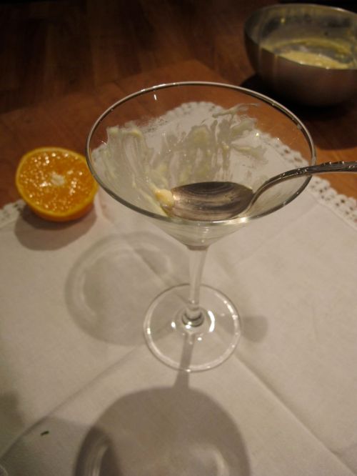 1 juicy orange–carefully peeled (lifting off the white pith), halved and sliced thinly