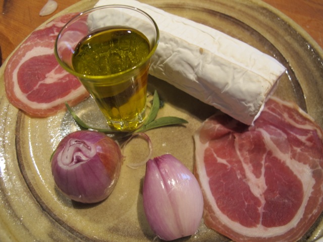 - 4 pancetta slices–halved (you could use prosciutto too, if pancetta is difficult to source.)
