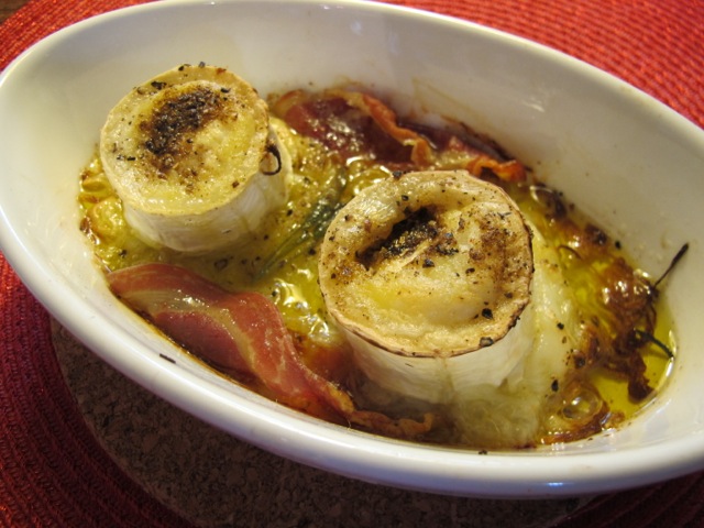 It came in individual dishes straight from the oven–the cheese melting into the shallots, the pancetta crisp.