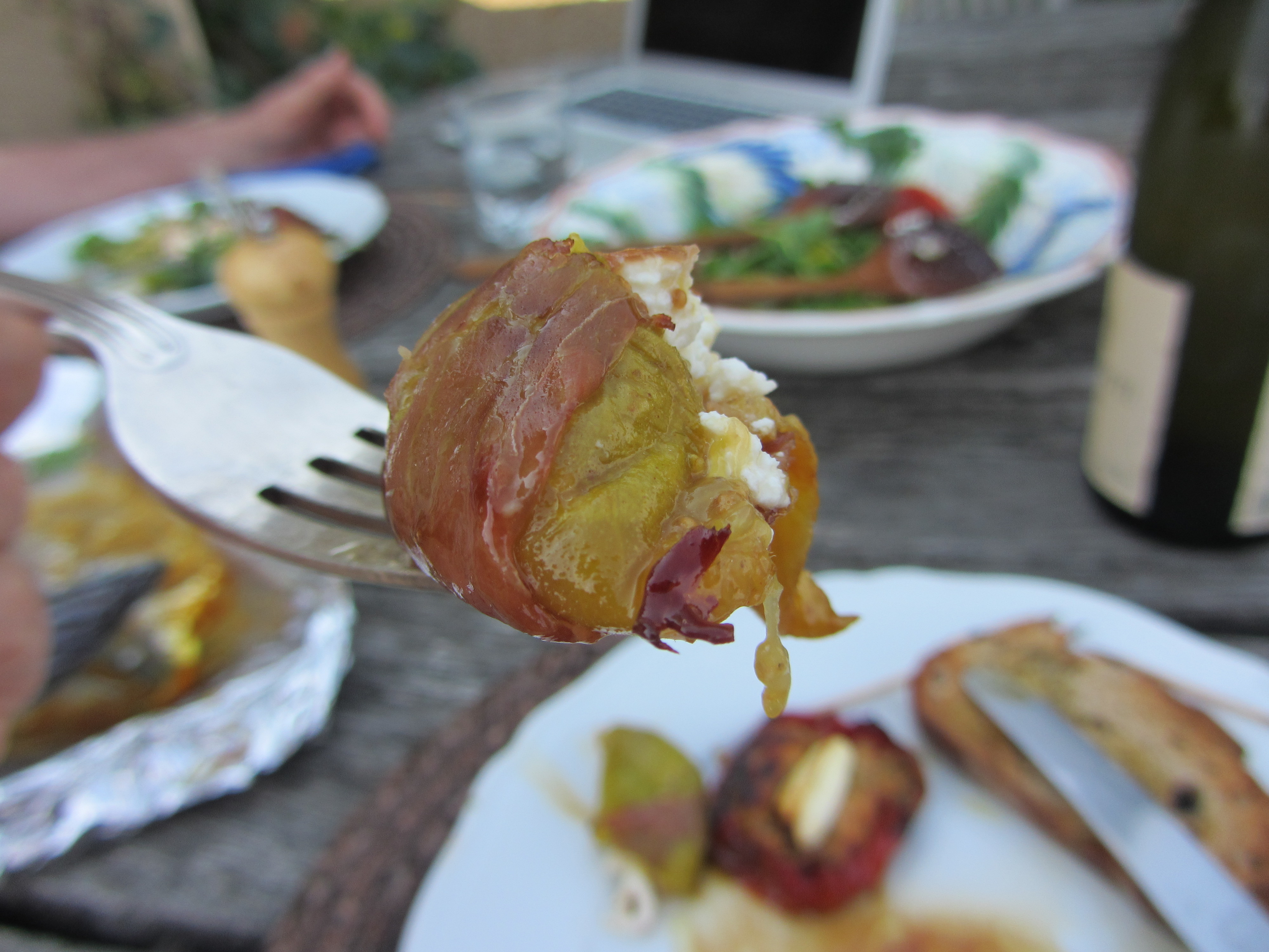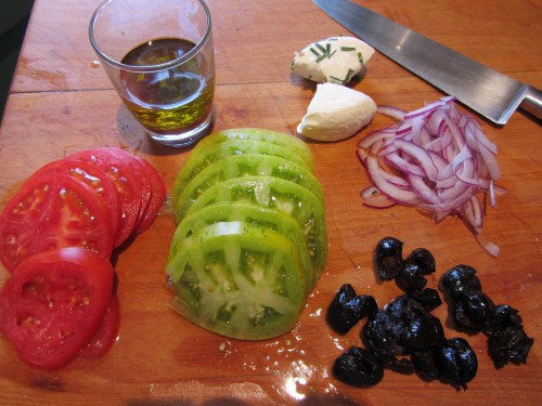 Two of the three I used for this dish came from our vegetable patch–even in mid-October the last surviving zucchini plant is turning out courgettes–and perfect specimens they are. Almost a pity to cook them!