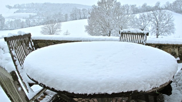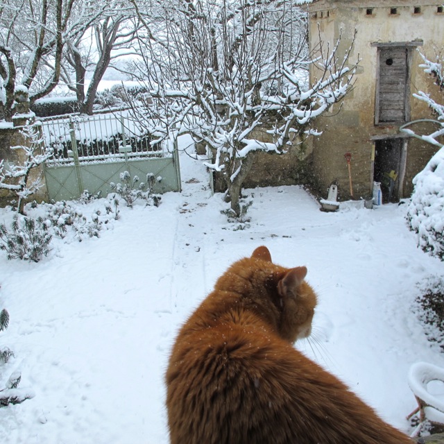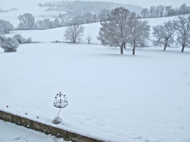 The first flakes of snow were falling gently and laying, so taking my chance I set out–fortified by this habitual breakfast.
