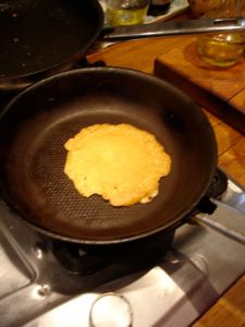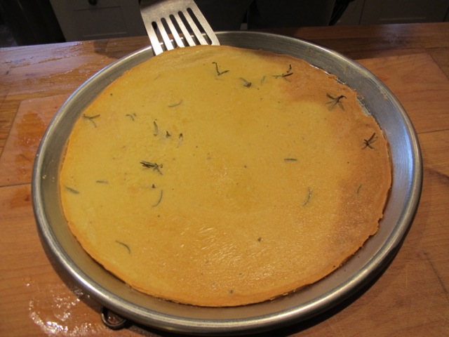 We enjoyed it on a slice of the homemade socca–chickpea flour–bread.