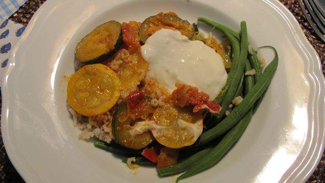 Serve over Basmati brown rice with green beans and some garlicky yogurt on the side–lunch on a sunny Sunday.