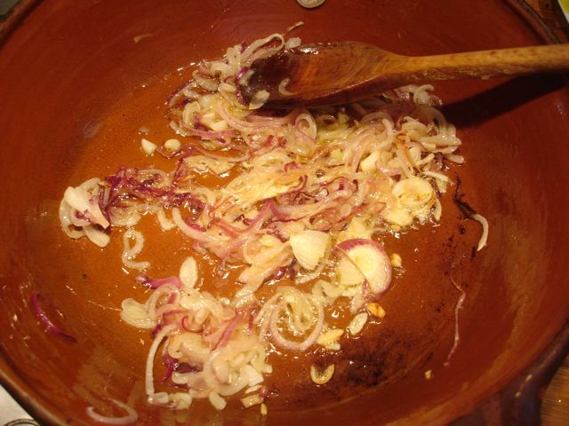 - Sauté the onion and the garlic over a medium heat until golden (about 5 minutes).