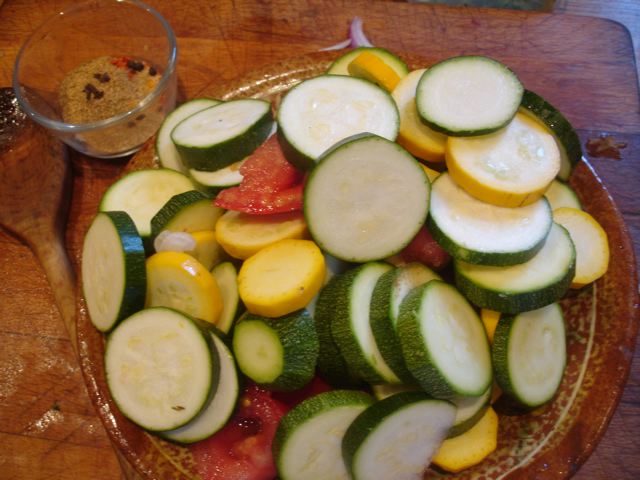 3 medium zucchini/courgettes [a yellow one for the look– if available]- sliced